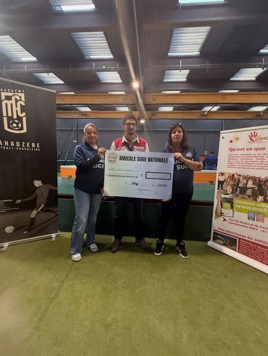Merci à toutes les équipes participantes pour leur énergie et leur fair-play, et un immense merci à l’Amicale SUGE pour leur générosité : un chèque de 300 € a été remis à l’ONCF afin de soutenir nos actions en faveur des pupilles de nos adhérents sur le tournoi de foot organisé début octobre par l’Amicale SUGE